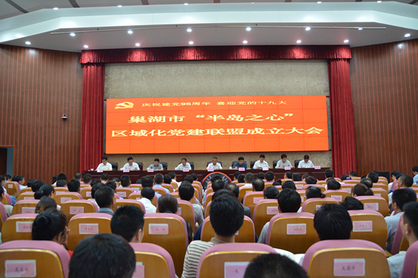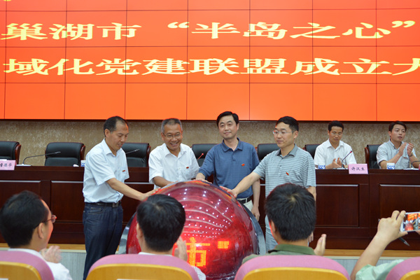 6月30日下午,巢湖市“半岛之心”区域化党建联盟成立大会召开,省委组织部干部教育处处长、安徽组干学院院长王林武,省委组织部农村组织处处长张明,合肥市委常委、巢湖市委书记胡启生,合肥市委组织部农村组织处处长詹德华,巢湖市领导朱心刚、王劲等出席会议。会议由巢湖市委副书记许汉生主持。胡启生强调,要以“半岛之心”区域化党建联盟为契机,不断开创我市基层党建工作新局面,为奋力实现“安徽争五强、全国进百强”目标,加快建设“明珠之城”夯实党建之基,以更加优异的成绩迎接党的十九大胜利召开。