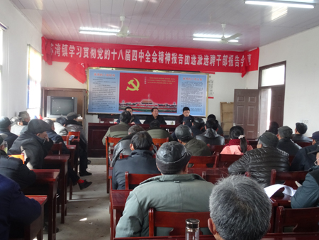 3月12日,苏湾镇学习贯彻党的十八届四中全会精神报告团选派选聘干部报告会来到苏湾镇联合村,联合村全体干部及党员代表参加了报告会。